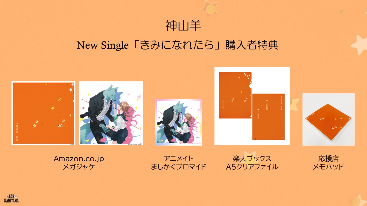 CDの共通収録曲はTVアニメ『キミと越えて恋になる』エンディングテーマとしてオンエア中の「きみになれたら」を表題曲として、今年1月に開催したワンマンライブ「神山羊 2025 LIVE / Lab:TITAN」で披露され、未発表の楽曲として話題を呼んでいた「ノンフィクション」を収録。